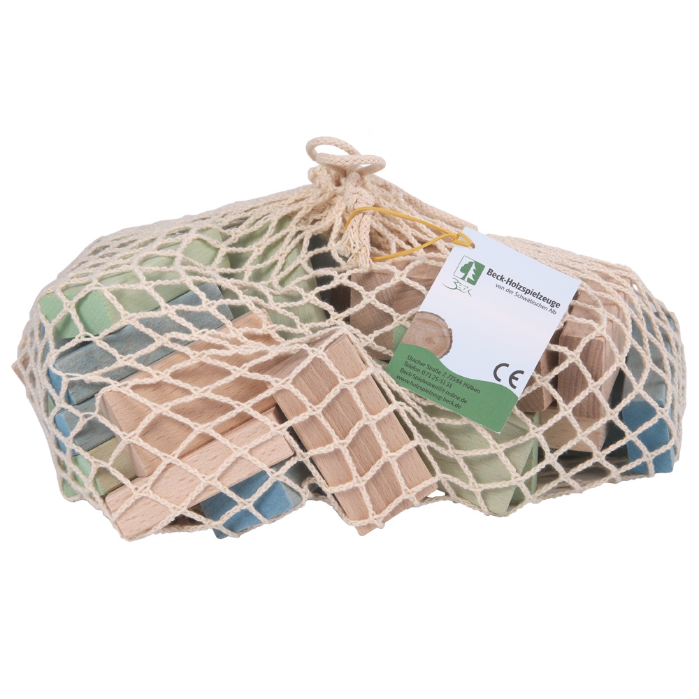 Die Bausteine sind in einem praktischen Baumwollnetz verpackt. Pro Farbe sind 16 Bausteine enthalten.
