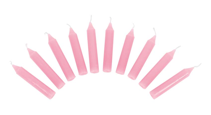 10 rosafarbene Kerzen für die Geburtstagskränze, Geburtstagszüge und die anderen Geburtstagsdekorationen.