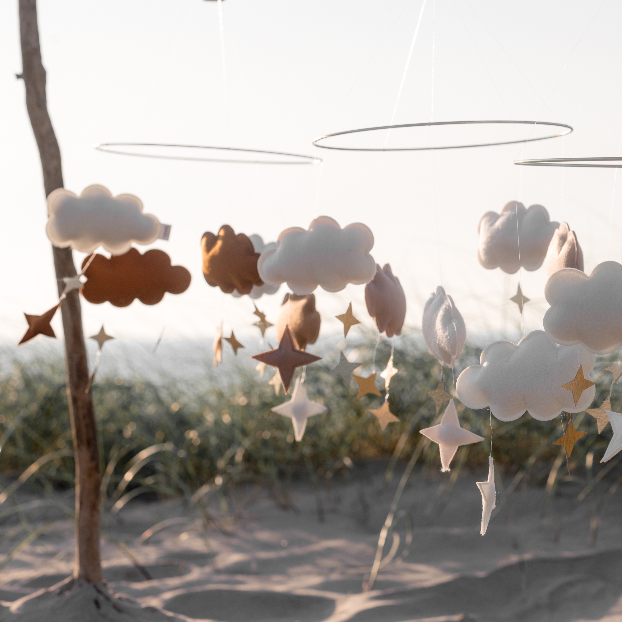 Fantasy Clouds, das wunderschöne Baby Mobile aus Filz von Baby Bello - der neuen Trendmarke aus Amsterdam.