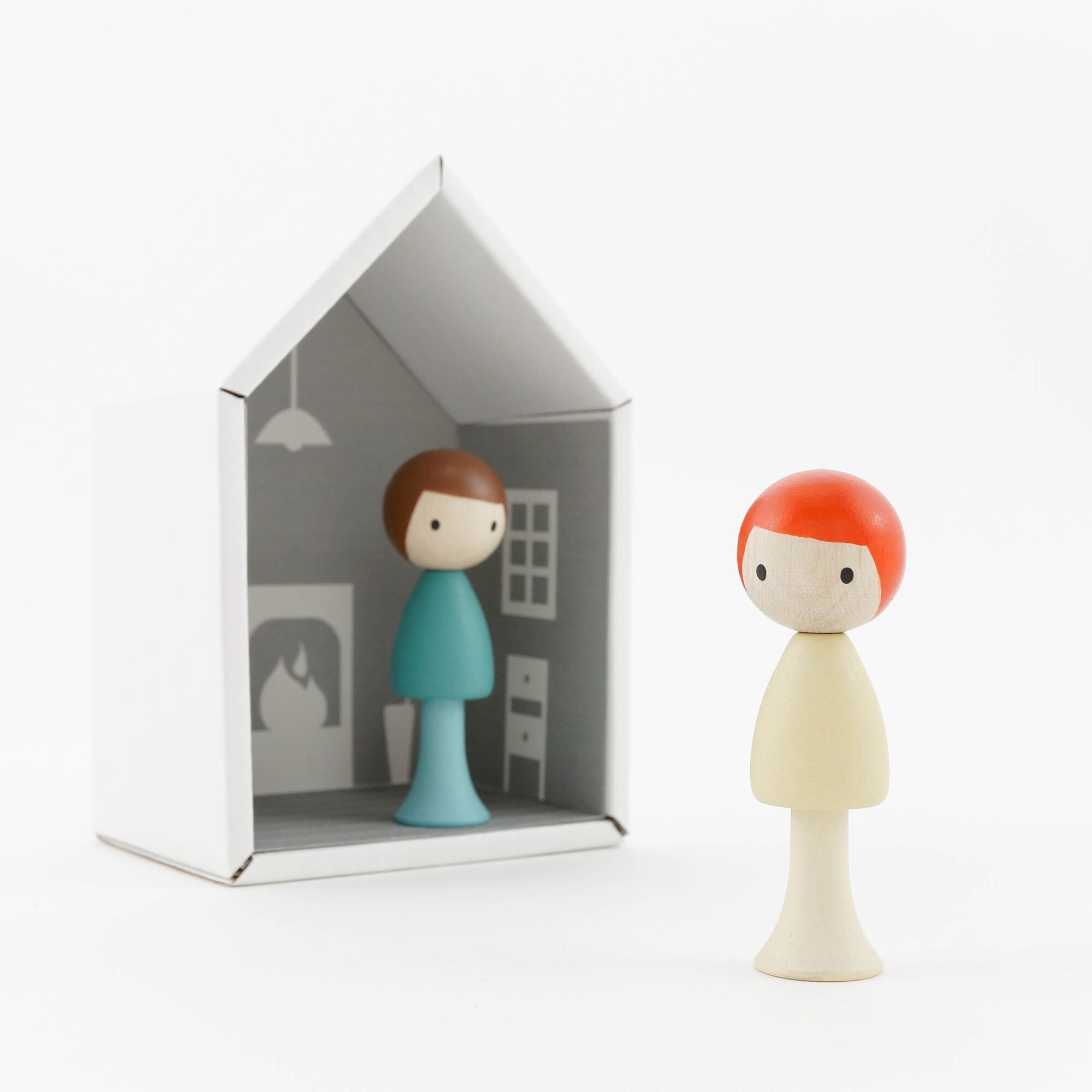 Geliefert werden die Püppchen in einem kleinen stabilen Karton in der Form eines Hauses, das mit ins Spiel integriert werden kann.