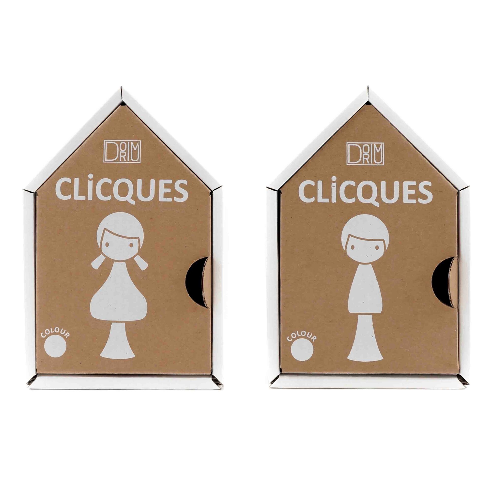 Das Set Max & Emil besteht aus zwei Jungen, die aus jeweils drei Teilen (Kopf, Oberkörper, Unterkörper) bestehen. Kleine Magnete ermöglichen ein kinderleichtes Wechseln der einzelnen Teile zwischen den Puppen. So entstehen neue Farbvarianten und man kann mit den CLICQUES nicht nur spielen, sondern sie auch zum Lernen und Farben zuordnen einsetzen.