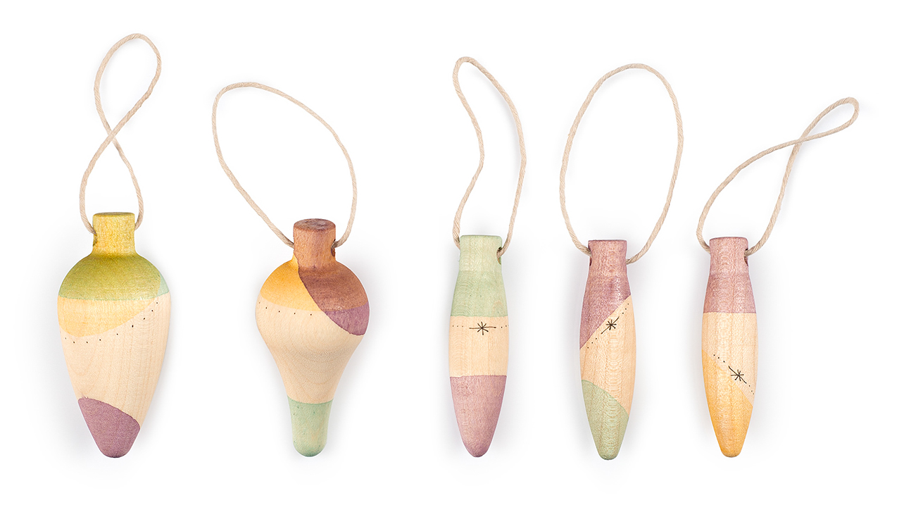 Funkelnder Nebel - Dieses zauberhafte Ornament Nº2 Twinkle Mist Set von Grapat aus der DEAR X-MAS Kollektion besteht aus fünf Anhängern in drei verschiedenen Formen und unterschiedlicher Bemalung.