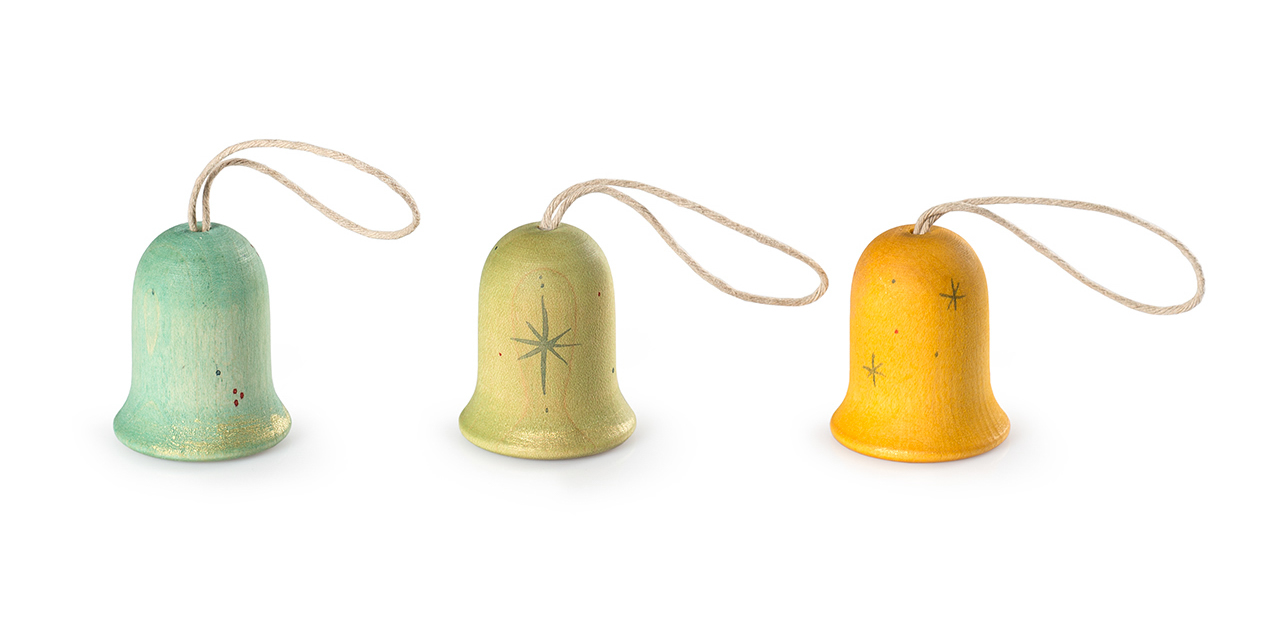 Funkelnder Nebel - Dieses zauberhafte Ornament Nº3 Jingle Joy Bells Set von Grapat aus der DEAR X-MAS Kollektion besteht aus 3 Glöckchen aus Holz in unterschiedlicher Bemalung.