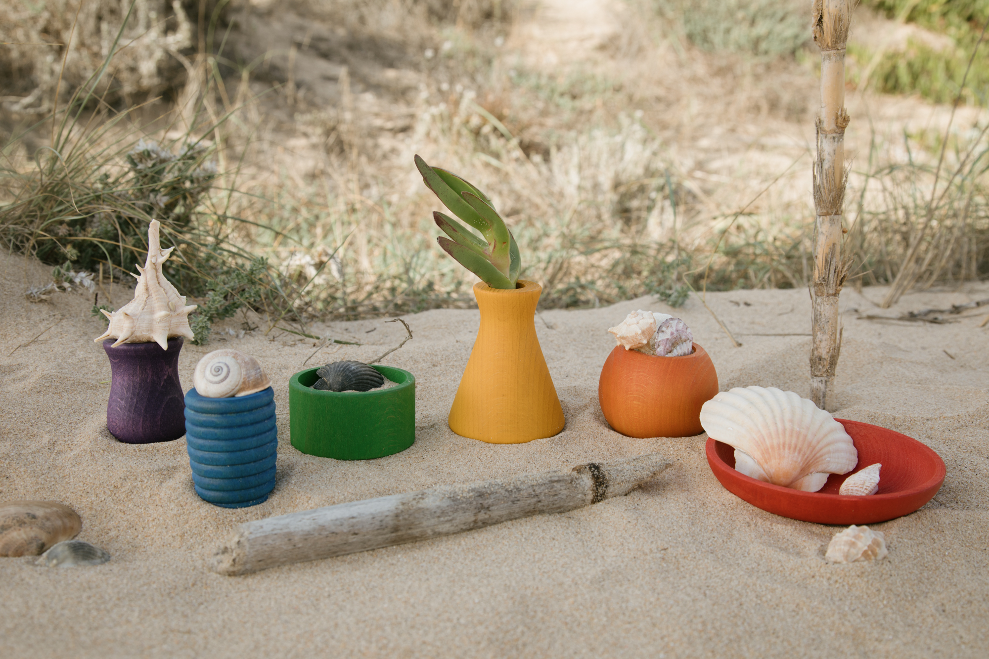 Kombinieren kann man die Pots wunderbar mit dem tollen Tool Set von Grapat, aber auch mit allen anderen Open Ended Play Spielmaterialen.