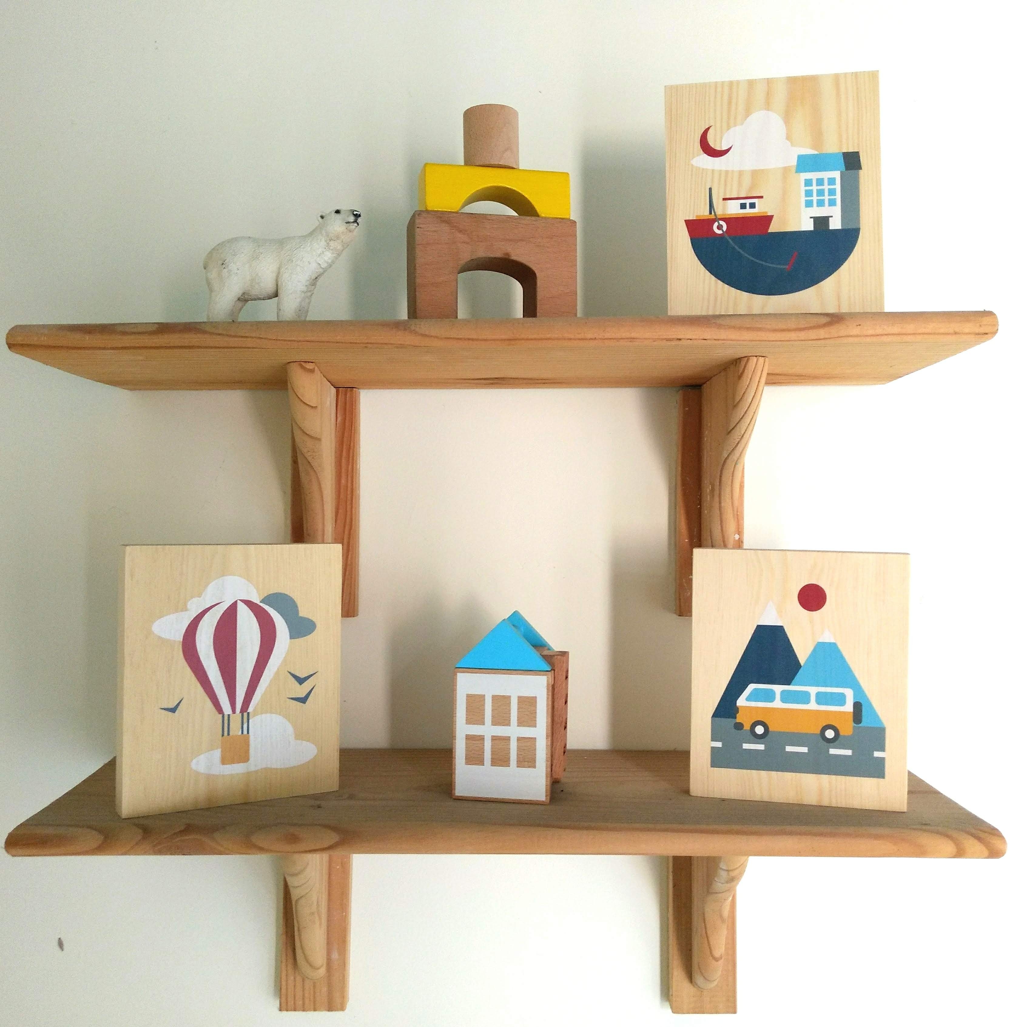 Eine wunderschöne Dekoidee für das Kinderzimmer sind die modern und farbenfroh gestalteten Wandbilder aus Holz von Lubulona aus Barcelona.