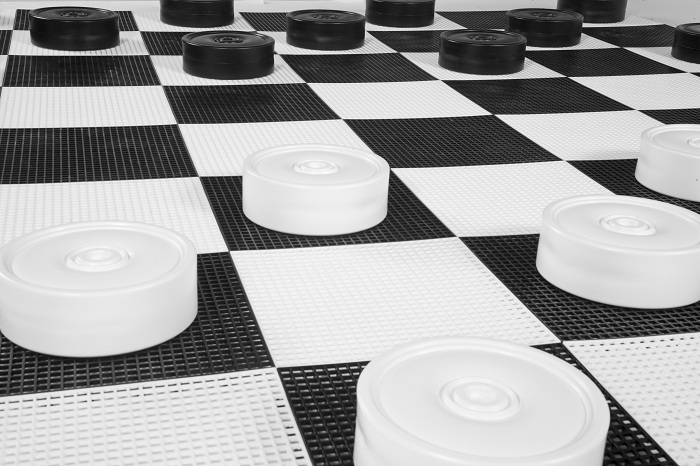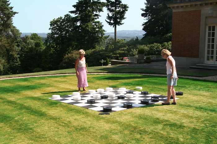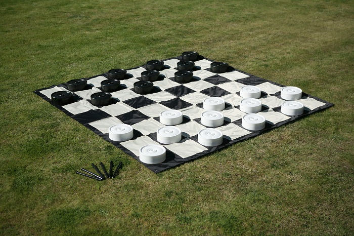 Dieses tolle Allwetter Giga-Damespiel ist zwar nicht aus Holz, dafür kann man es aber im Freien spielen!