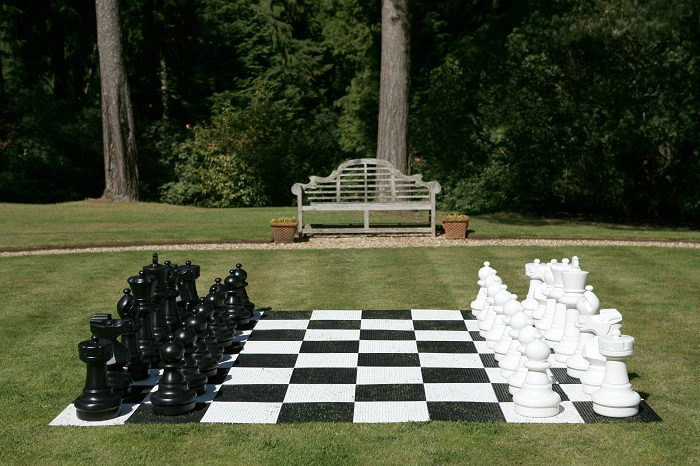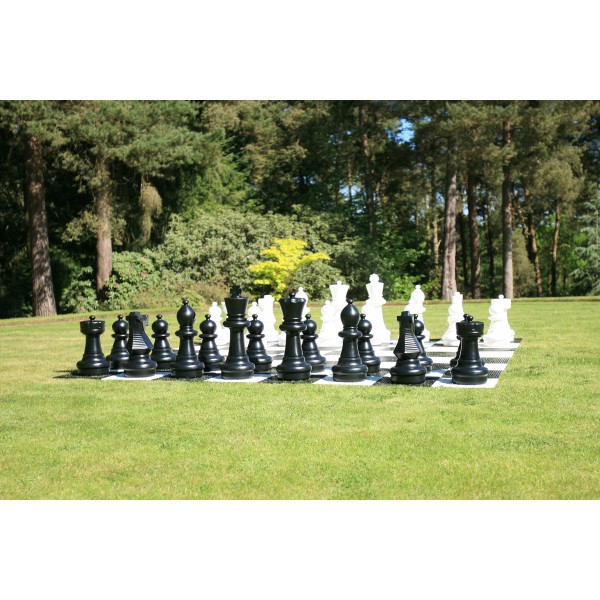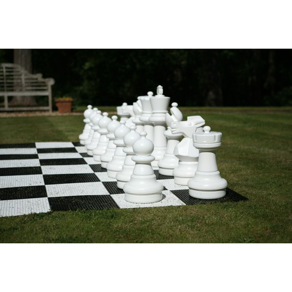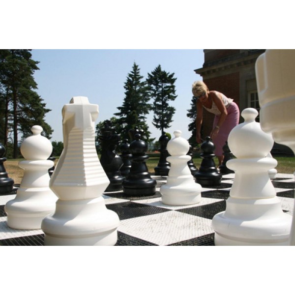 Dieses riesige Allwetter Schachspiel ist zwar nicht aus Holz, dafür kann man es aber im Freien spielen!