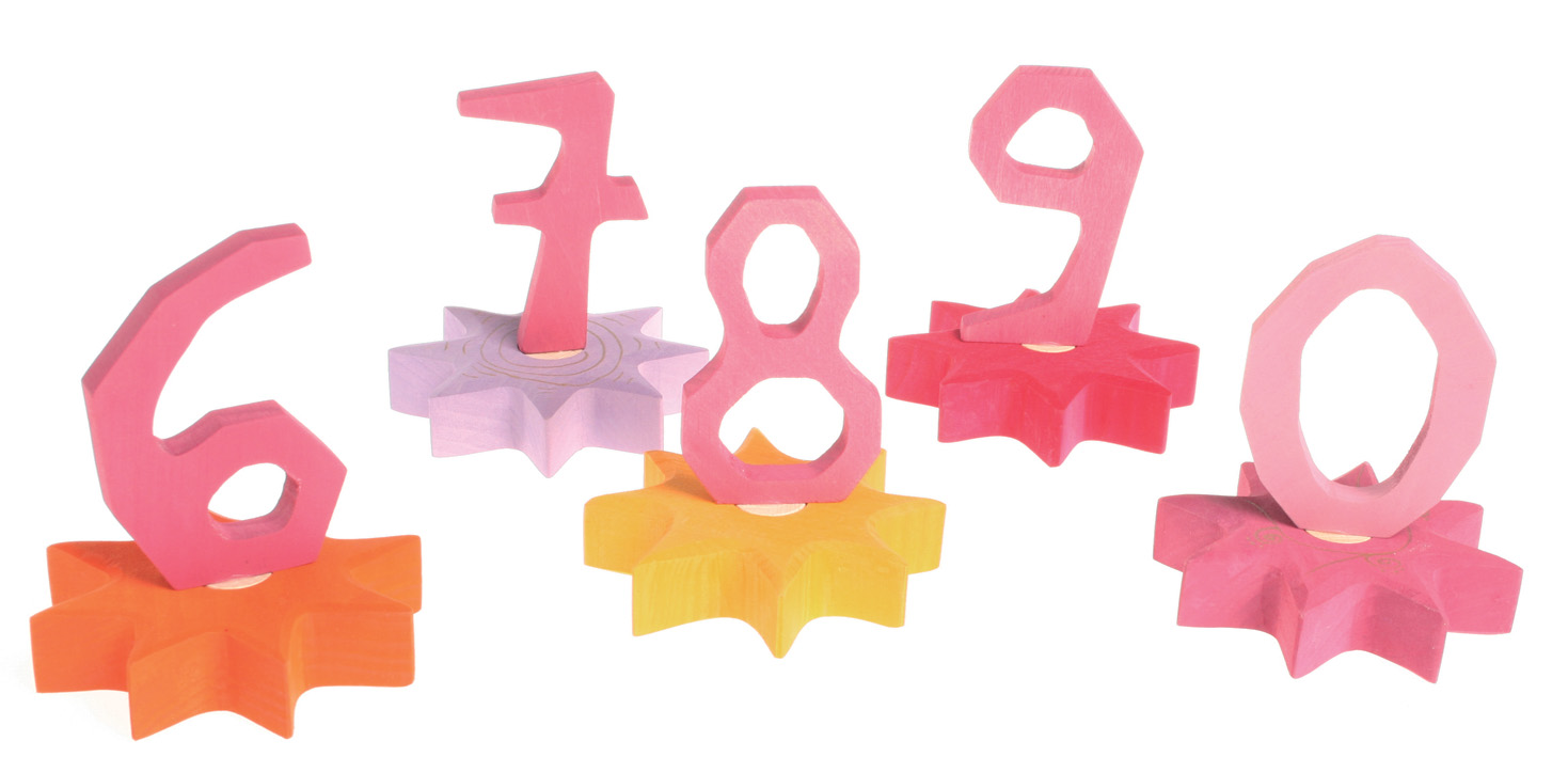 Der rosafarbene Zahlenstecker 7 passt in alle Geburtstagsringe, Geburtstagsdekorationen, Zweige und Blätter von GRIMM´S, besonders gut aber in die Lollipop-Serie.