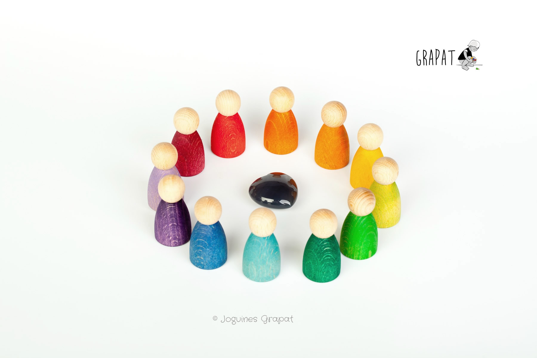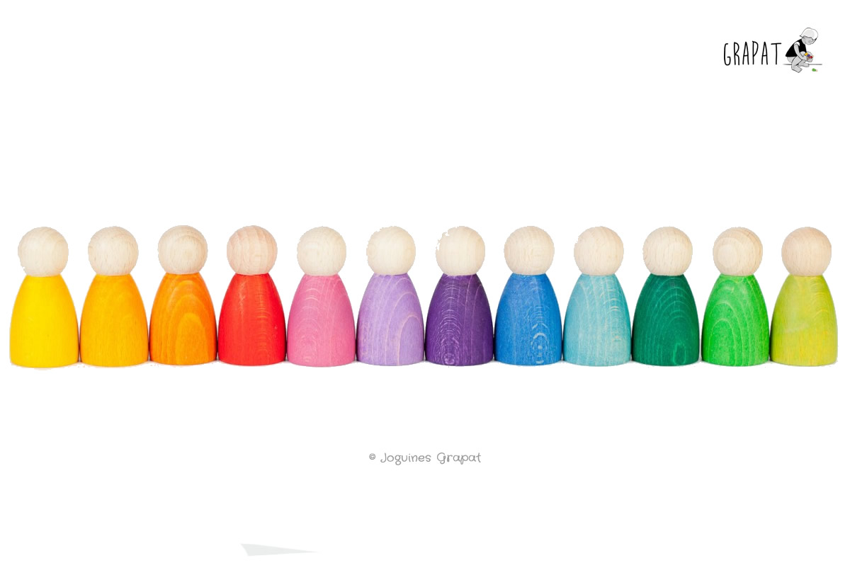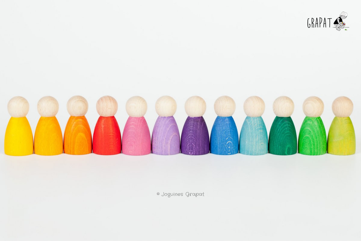 Grapat 12 Nins® - Diese Set besteht aus 12 unterschiedlich gefärbten Holzfiguren in den Farben des Regenbogens.