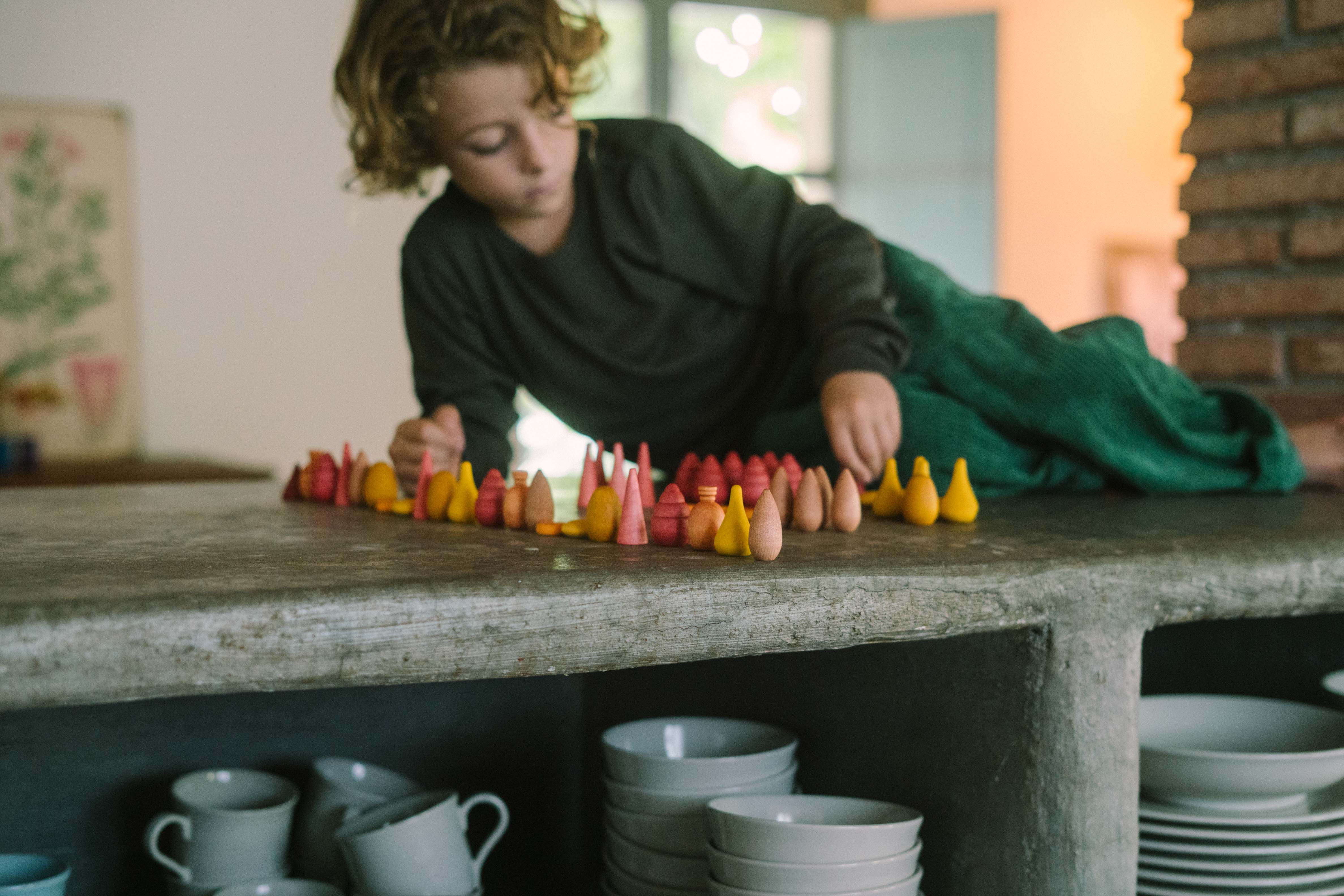 Das Warm Mandala Mix Set aus Massivholz sind treue Begleiter beim Spielen und Lernen.