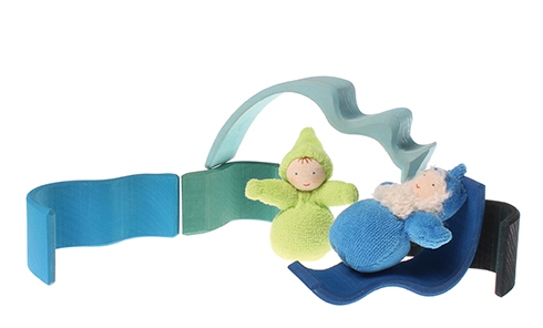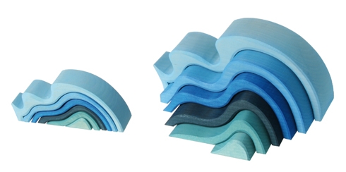 Die Wasserwellen gehören zu den 4 Elementen und sind ein vielseitiges Spielzeug. Es gibt zahlreiche Möglichkeiten, wie und wo man sie einsetzen kann. Ob zum Stapeln, Ineinanderschieben, Türme bauen oder zum Einfangen von Urlaubserinnerungen, indem man sie zum Beispiel mit Mitbringseln aus den Ferien, wie Muscheln oder Steinen dekoriert... Sie können zum Spielen verwendet werden oder aber als Dekoration. So hat die ganze Familie etwas davon!
