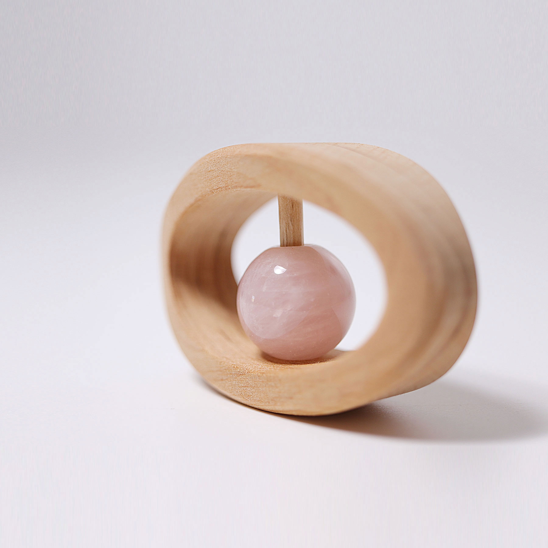 Die Rosenquarz Rassel ist aus Erle gefertigt.