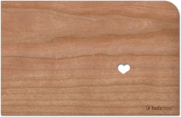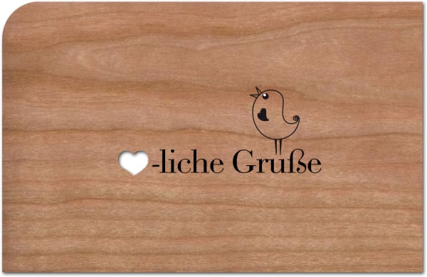 Ein Herz und ein singendes Vögelchen sind das Motiv dieser bezaubernden Holzkarte.