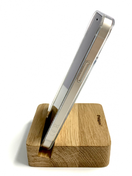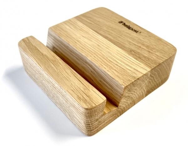Der Smartphoneständer von Holzpost® wird aus geöltem Eichenholz gefertigt.