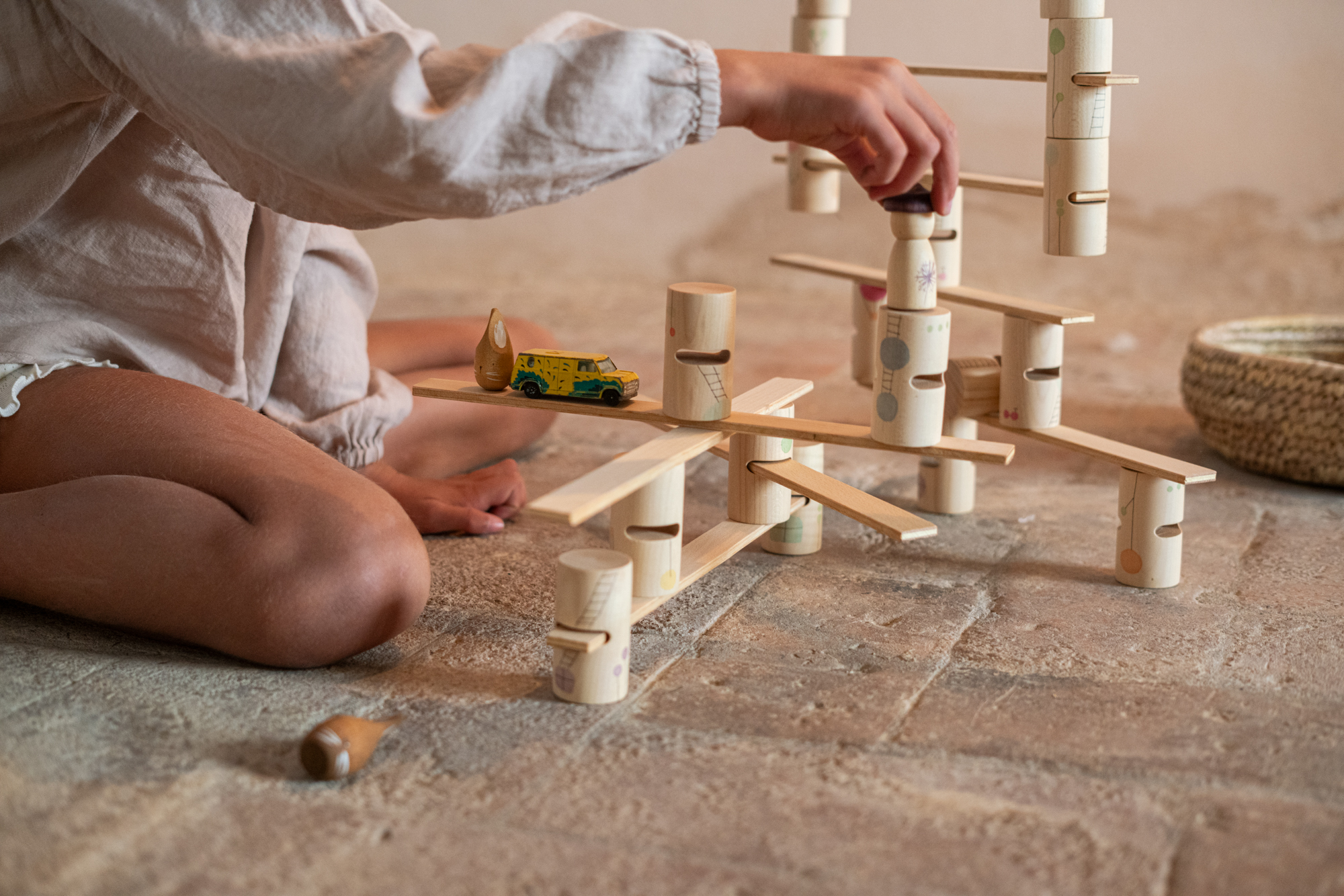 Vielfältige Einsatz- und Spielmöglichkeiten ergeben sich durch die schlichte Form und tolle Kombinierbarkeit mit den anderen Holzspielzeugen von Grapat.