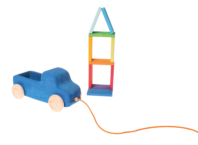 Das stabile Ziehspielzeug ist aus massivem Holz gefertigt. In der Wohnung, aber auch im Garten, kann der Lastwagen auf große Fahrt gehen. Denn mit einem feuchten Tuch lassen sich die robusten Ziehspielzeuge von GRIMM´S leicht reinigen.