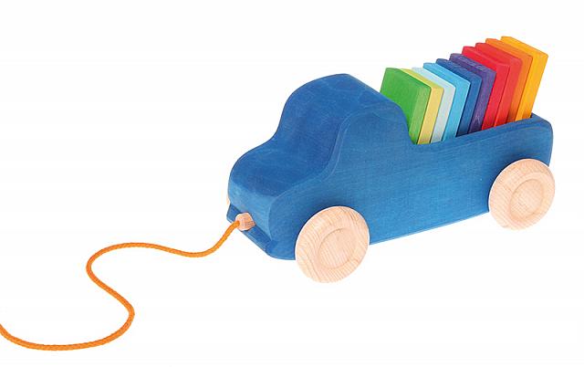 Der Nachzieh-Laster ist aus lasiertem Lindenholz gefertigt.