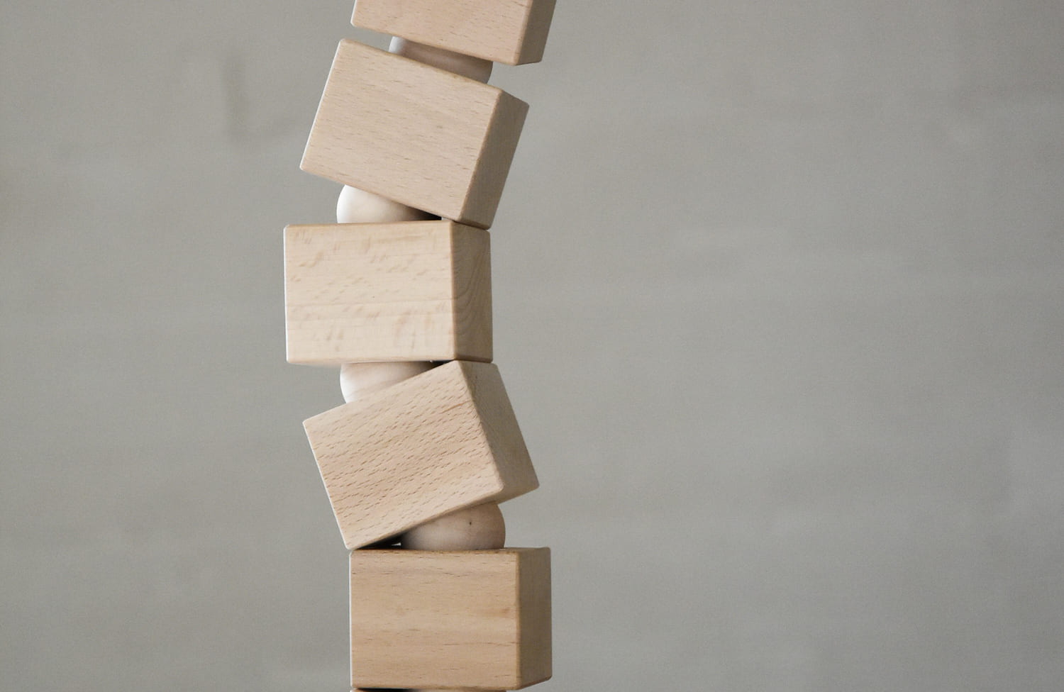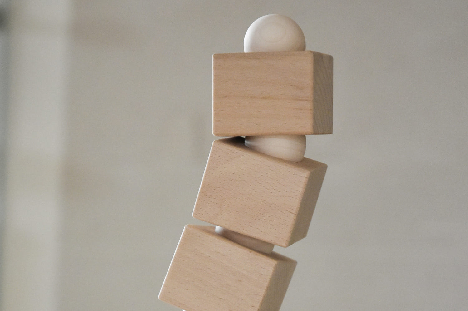Der Balance Tower ist ein ästhetisches Holzspielzeug aus sorgfältig verarbeiteten Holzbausteinen aus Buche. Jeder Block besteht aus einer konvexen und einer konkaven Seite.