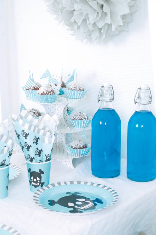Toll ist das auf die Piraten-Servietten abgestimmte Zubehör wie Luftballons, PomPoms, Muffin-Sets und vieles mehr.