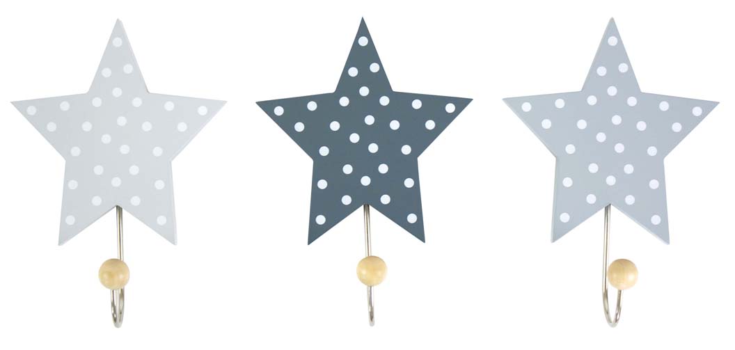 Drei süße Garderobenhaken in Sternform schmücken die Wand und sorgen gleichzeitig für Ordnung!