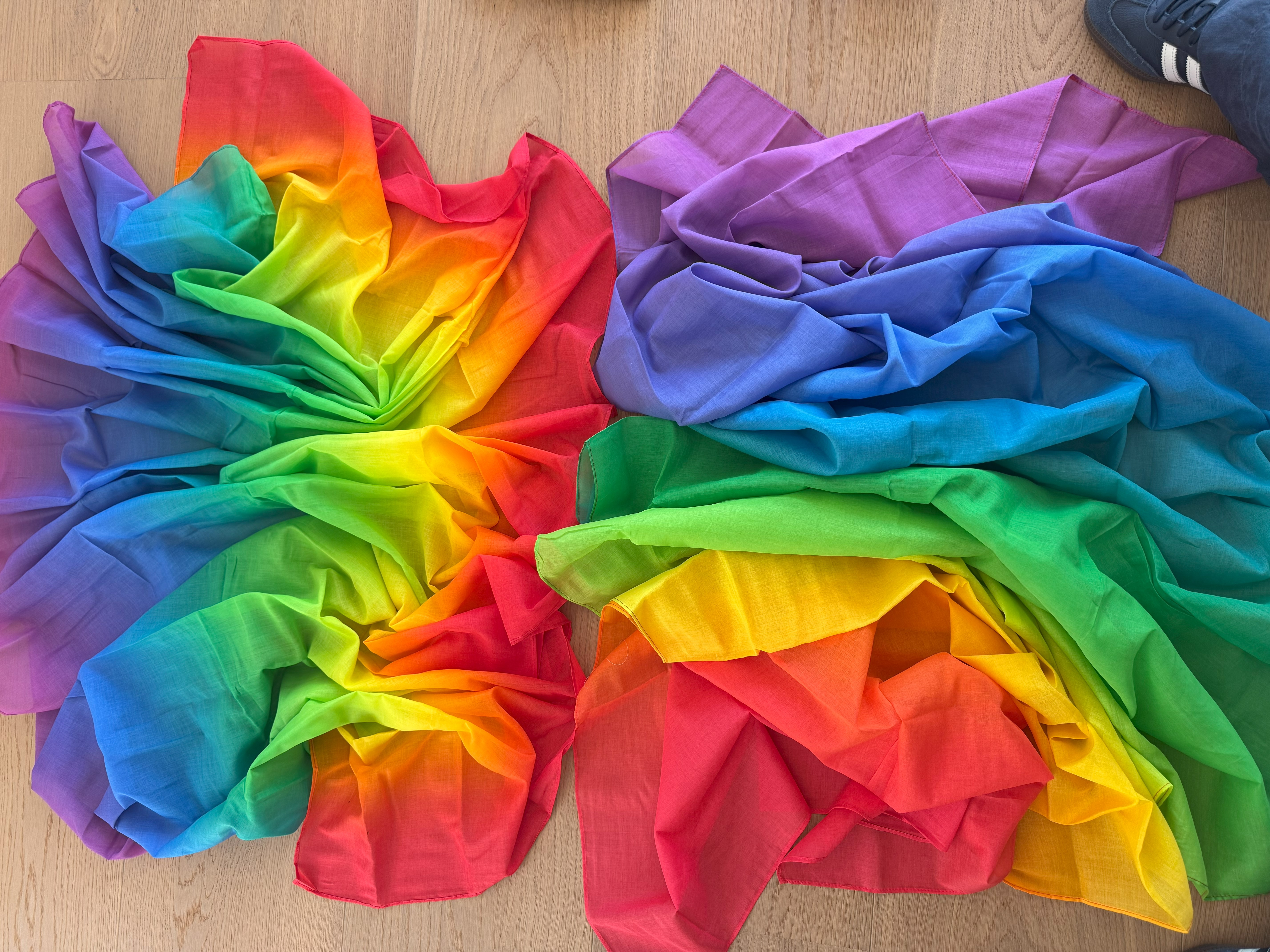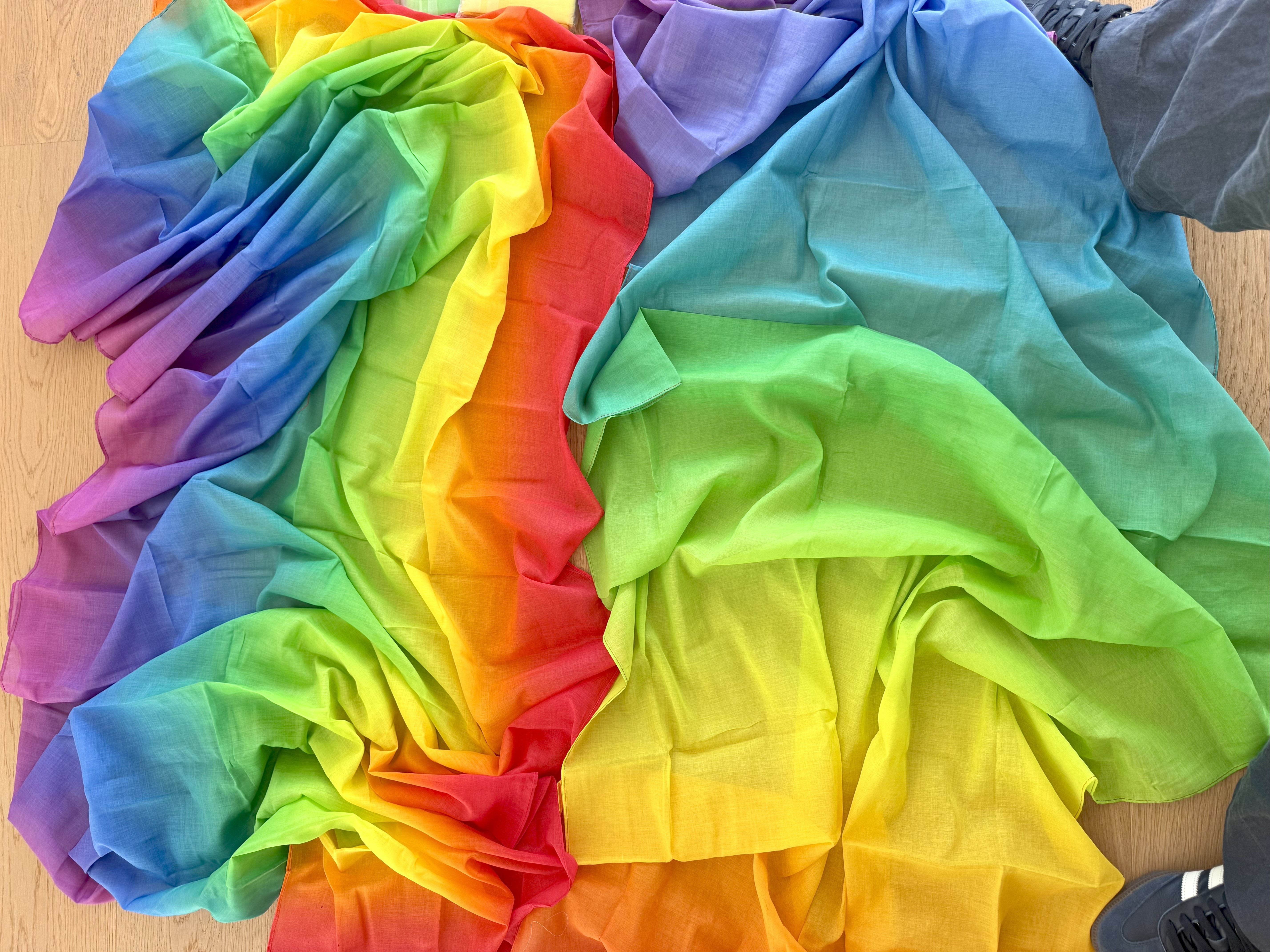 Entdecke die zauberhaft weichen Regenbogen-Spieltücher aus Organic Cotton von Laura's Play Cotton.