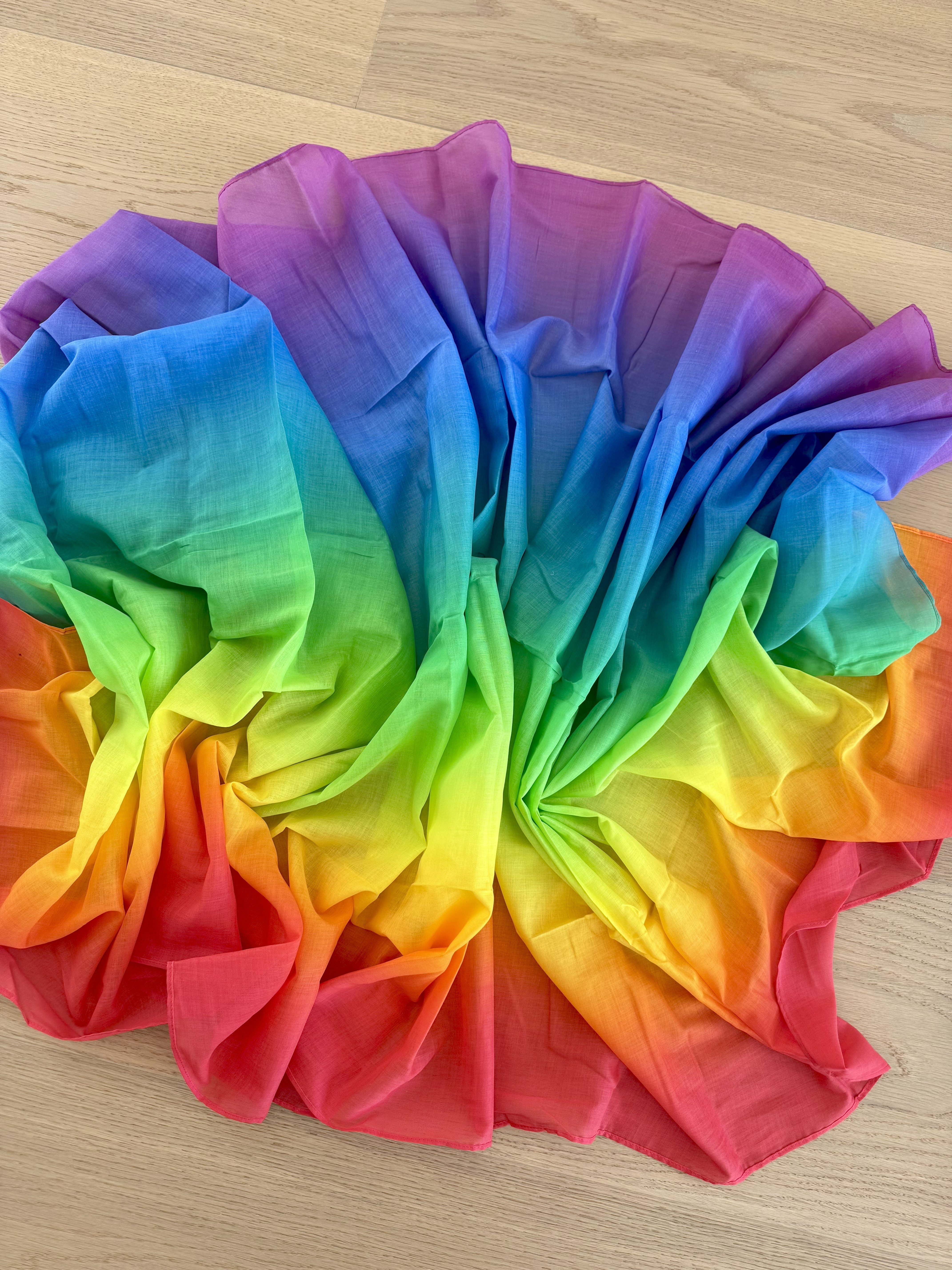 Das große längliche Spieltuch RAINBOW von LAURA´S Play Cotton lädt ein zu einem grenzenlosen, phantasievollen, freien Spielen der kleinen Weltentdecker.