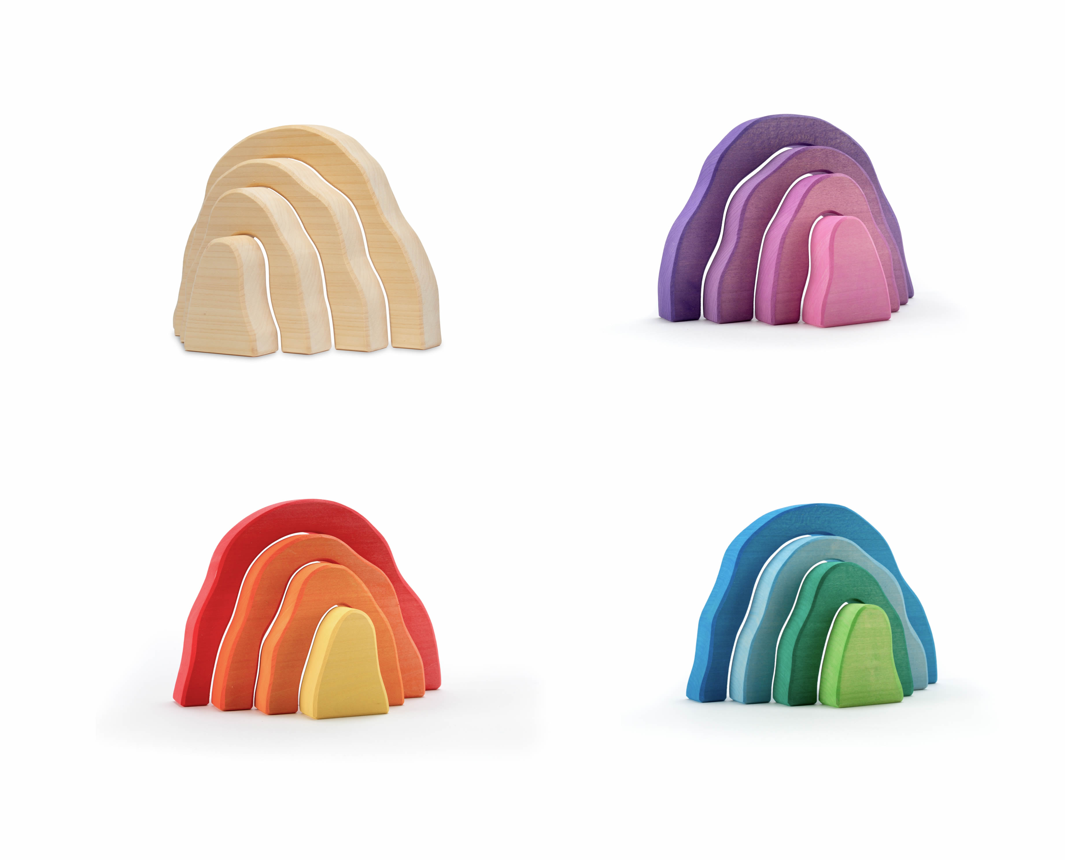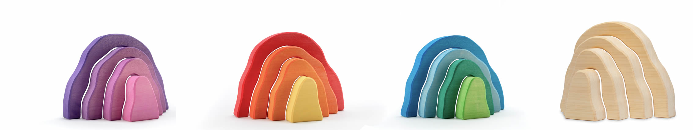 Die Stapelberge, Regenbogen und Höhlen sind für kleine Hände entwickelt worden. Sie können wunderschön in diverse Spielwelten eingebunden werden, sehen aber auch immer auch als Deko ganz zauberhaft aus. Und das nicht nur im Kinderzimmer.