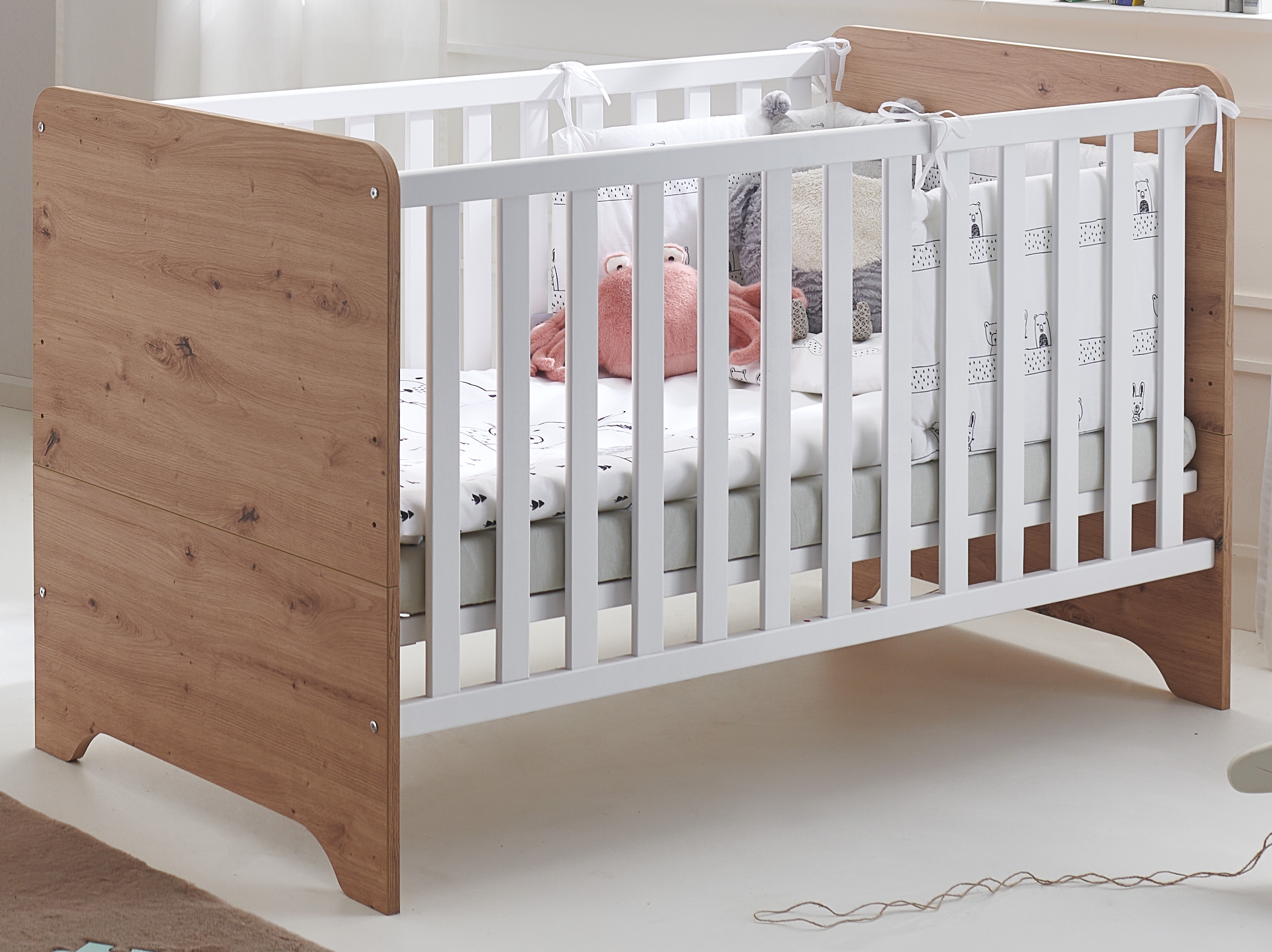 Harmonisch, modern und funktional: Das ist die Babyzimmerserie MARLON von Arthur Berndt. Die abgerundeten Ecken in der warmen Artisan Oak NB machen das Babyzimmer MARLON zu einem besonderen Hingucker. Das Kreideweiß der Fronten lässt MARLON modern daher kommen. Neben der geräumigen Wickelkommode bietet das Set außerdem einen 3-türigen Kleiderschrank sowie ein Babybett. Die haptischen Dekoroberflächen aus pflegeleichtem Melamin sorgen für ein Wohlfühlerlebnis.