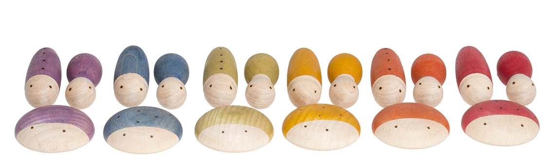 Noch mehr Zuwachs bei den Holzfiguren von Grapat! Dieses Set besteht aus den 18 Insekten im Farbspektrum des Regenbogens.