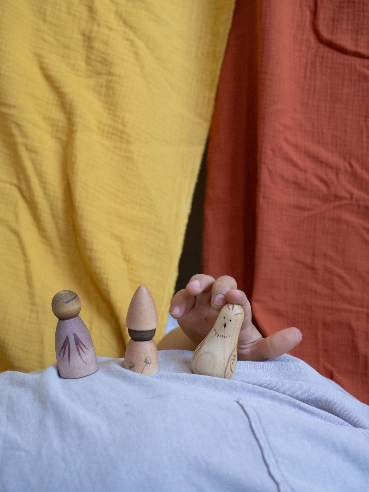 Es entstehen Small World Play Welten, die Kleinen werden ihre eigenen Geschichten finden, erzählen und nachspielen und die Holzfiguren werden als Loose Parts immer wieder auf überraschende Weise zum Einsatz kommen.