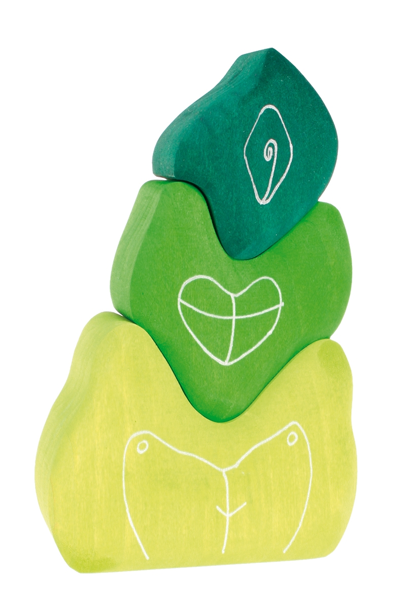 Der fantastische Bauelemente Blätterturm besteht aus 3 handbemalten Holzklötzen aus farblich lasiertem Lindenholz.
