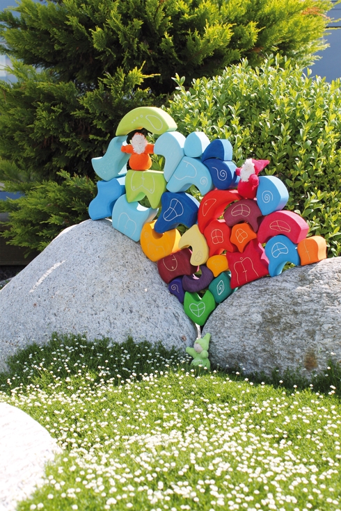 Die phantastischen Bauelemente von GRIMM´S haben mit den Geo-Bausteinen und Waldofklötzen vieles gemeinsam: sie weisen keinerlei scharfe Kanten auf, denn sie werden einzeln und von Hand geschliffen. Die natürlich-raue Oberfläche der Bausteine wird beibehalten, da sie nicht lackiert werden. So können sich auch keine Bakterien vermehren. Und man kann sie toll stapeln und verbauen, da sie durch ihre unlackierte Oberfläche nicht so rutschig sind.