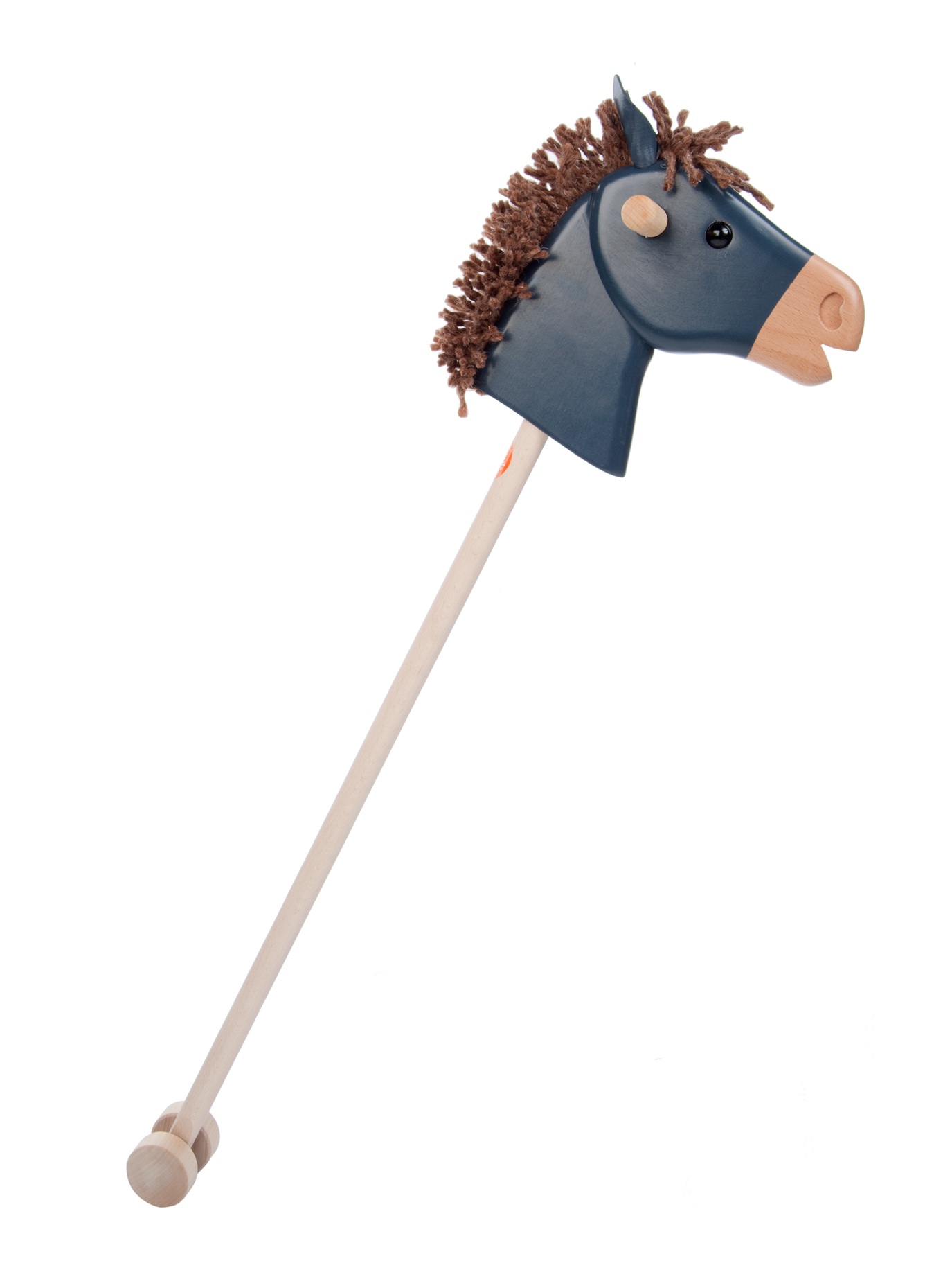 Am Pferdekopf ist das Steckenpferd mit zwei Handgriffen ausgestattet und am Stabende hat es zwei Rollen zum Hinterherlaufen.