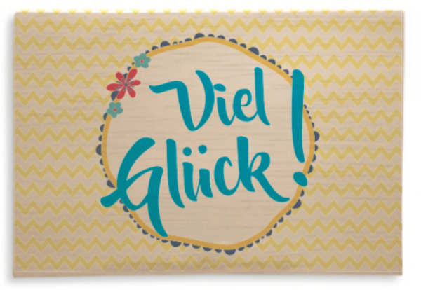 Der Schriftzug "Viel Glück" ist das Motiv dieser bunten Holzkarte.