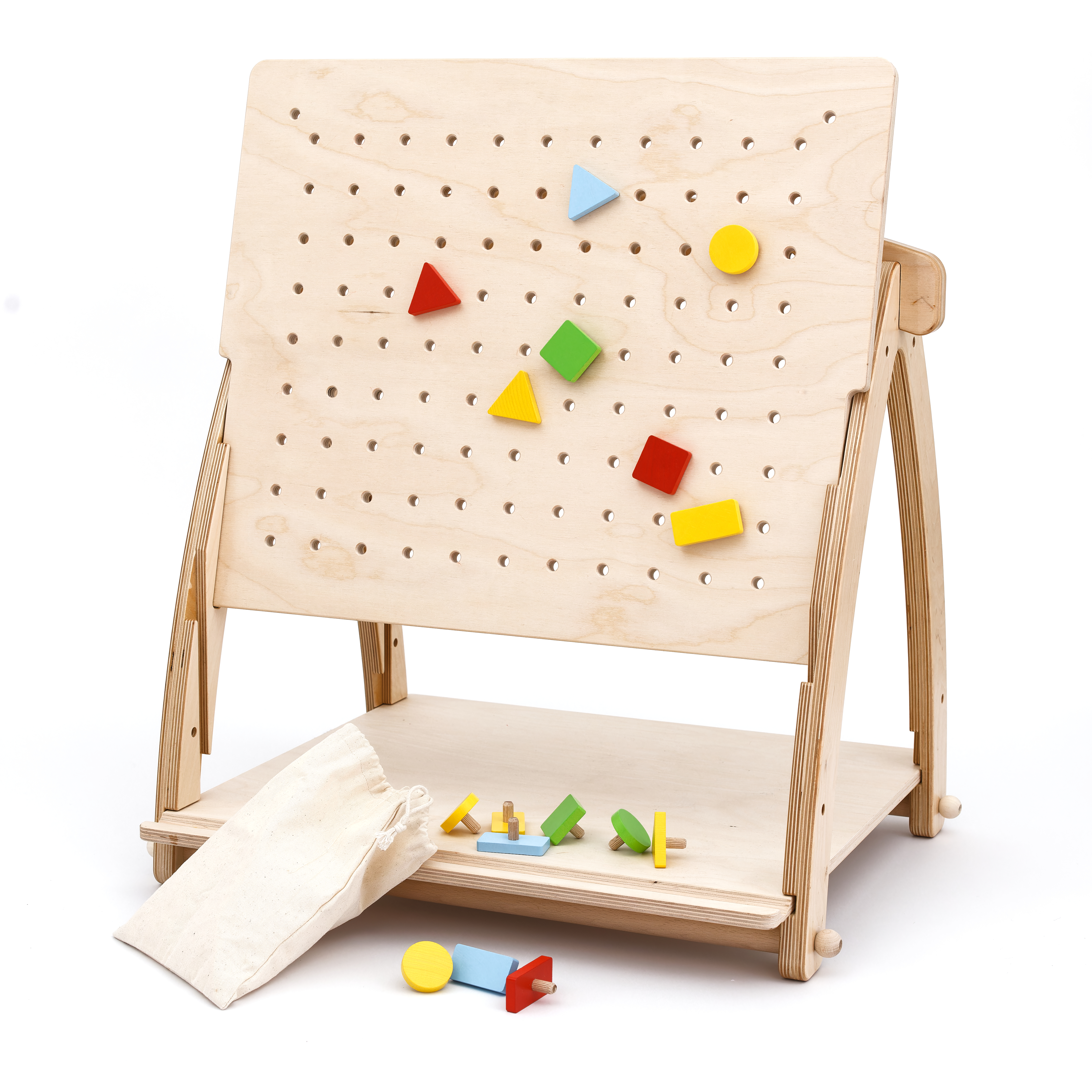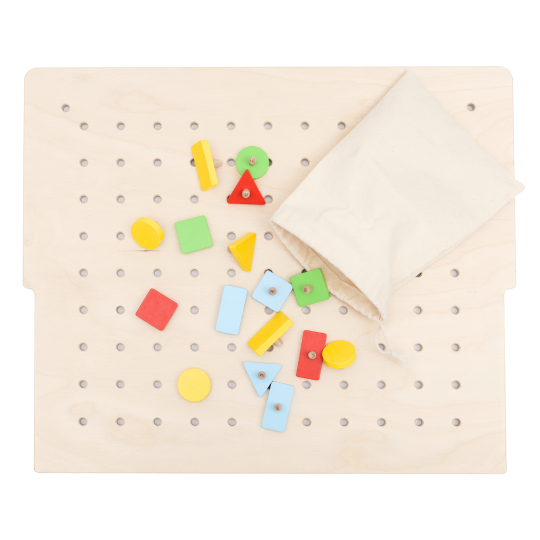 Spielend lernen mit der LEuLI Motorikplatte, Lochplatte und Geo-Steckern