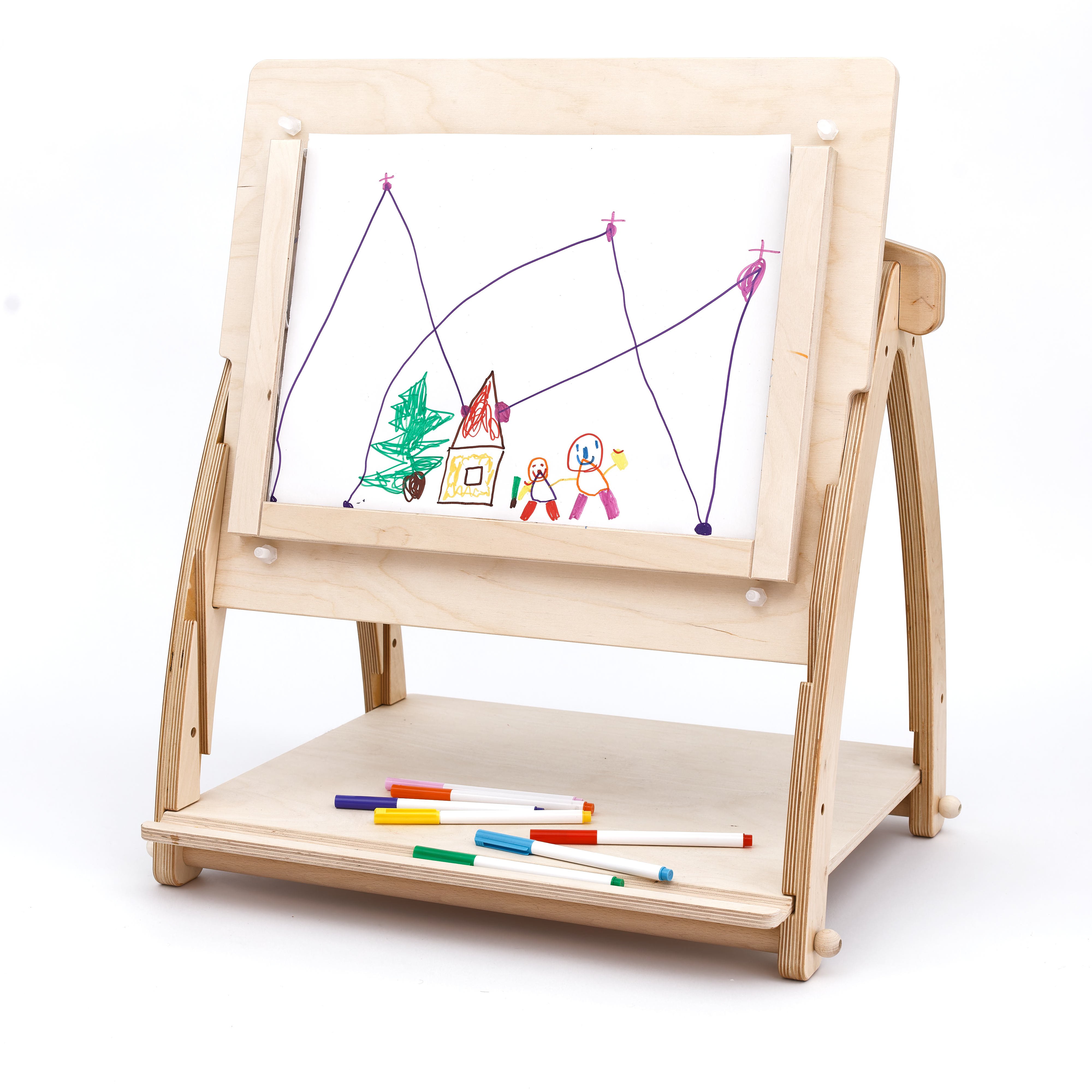 Künstlerisch wird es mit der LEuLI Kreidetafel zum Aufstecken. So wird aus dem Spielbogen im Nu eine Kreativwerkstatt mit Staffelei.