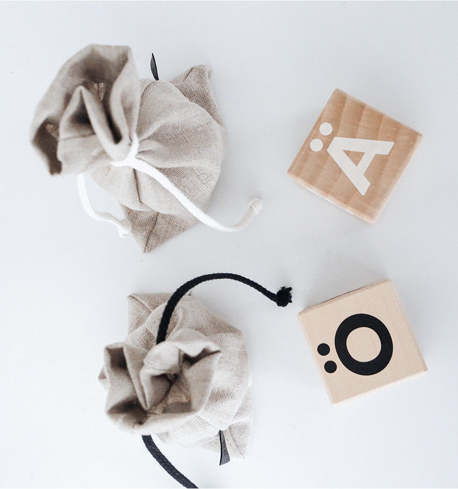 Der weich geschliffene Holzwürfel aus unbehandelten Massivholz fühlt sich wunderbar an. Geliefert wird er in einem Stoffbeutel aus Leinen.