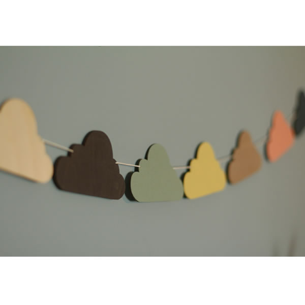 Kinderzimmer, Wohnzimmer, Schlafzimmer oder Flur? Egal, denn die bezaubernde Holzgirlande mit den Wolken von Rasmussons passt einfach überall!