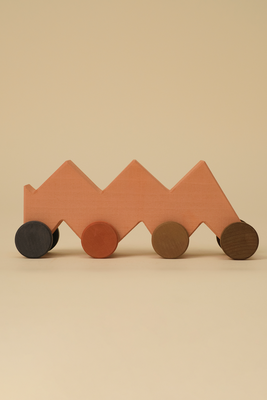 Das Zigzag Vehicle ist eines der lustigen Holzfahrzeuge von TOYTO. Was siehst Du? einen Blitz? Eine Raupe oder vielleicht doch eine Berglandschaft im Sonnenaufgang? Definitv ist das Zigzag Vehicle ein wunderschöner Blickfang, der nicht nur den Kleinen gefallen wird!