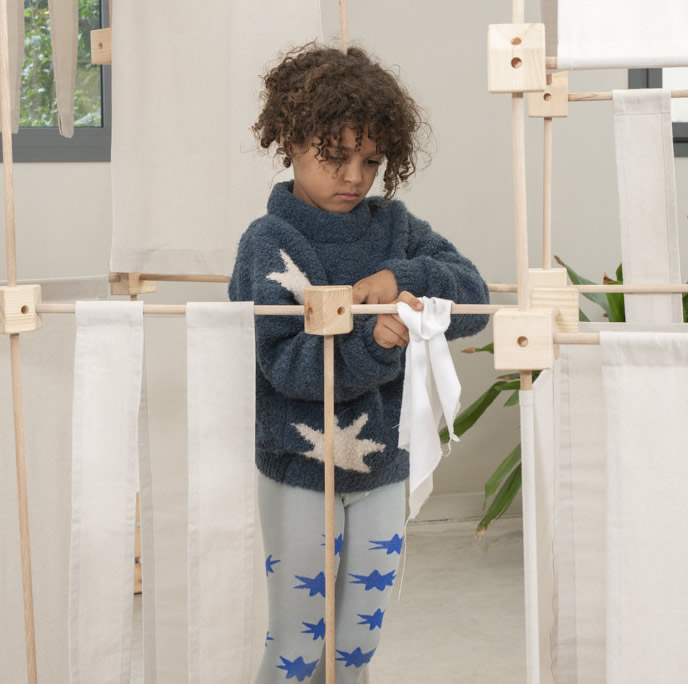 Die Vierkant- und Winkelklötzchen sind aus Fichtenholz gefertigt und so ausgelegt, dass auch kleine Hände mühelos damit spielen können. Die Leisten sind aus Buche, was sie flexibler und härter macht. Die Stoffstücke sind bis 30°C waschbar und bestehen aus Bio-Baumwolle.